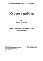 Тоталитаризмът е термин, възникнал след Първата световна война, за да опише формата на държавно устройство, при която властта е напълно централизирана и държавата се стреми да регулира и контролира всички аспекти на политическия, социалния живот...