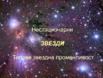 Типове звездна променливост. Променливи звезди. Пулсиращите звезди променят блясъка си и другите физични характеристики в резултат на свиване и разширяване....