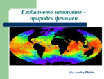 Главна причина: парников ефект – затопляне на земната атмосфера, причинено от увеличаващата се концентрация на атмосферни газове...