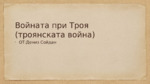 Според легендите Троянската война е водена между град Троя в Мала Азия и ахейската войска. Войната започва, след като троянецът Парис отвлича Хубавата Елена, жената на спартанския цар Менелай...