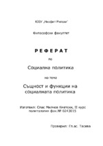 Социалната политика включва широк кръг елементи между, които се осъществяват социални взаимоотношения в резултат на влиянието на редица фактори. Това в известна степен затруднява точното дефиниране на съдържанието и обхвата на социалната политика.